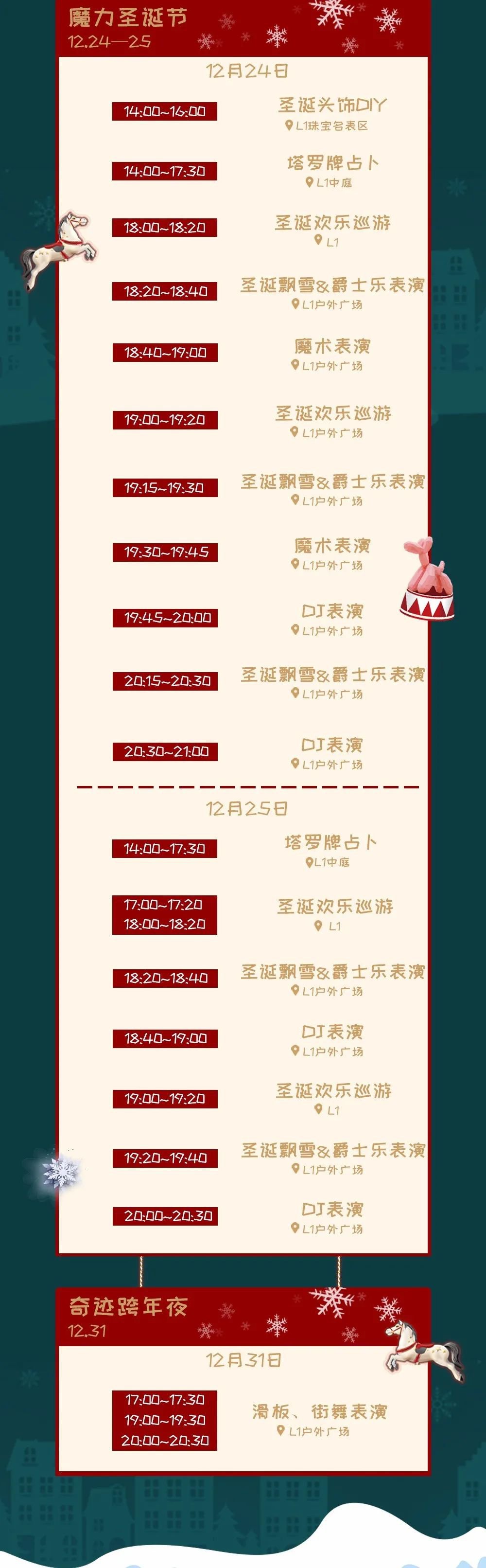 从12月12日开始直到跨年,海雅每周都有圣诞相关活动!圣诞老人巡游、爵士乐队、交响乐队、嘻哈表演……你对圣诞节的美好想象全部都能实现!12月18号、24号海雅都会飘下圣诞初雪,过一个仪式感100%的圣诞吧~